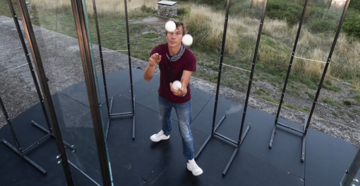 Les bruits de la planche est en spectacle en création. Dans ce solo Quentin Brevet, jongleur compulsif et clown touchant, interroge avec humour et sensibilité nos paradoxaux besoins humains de solitude et de lien.